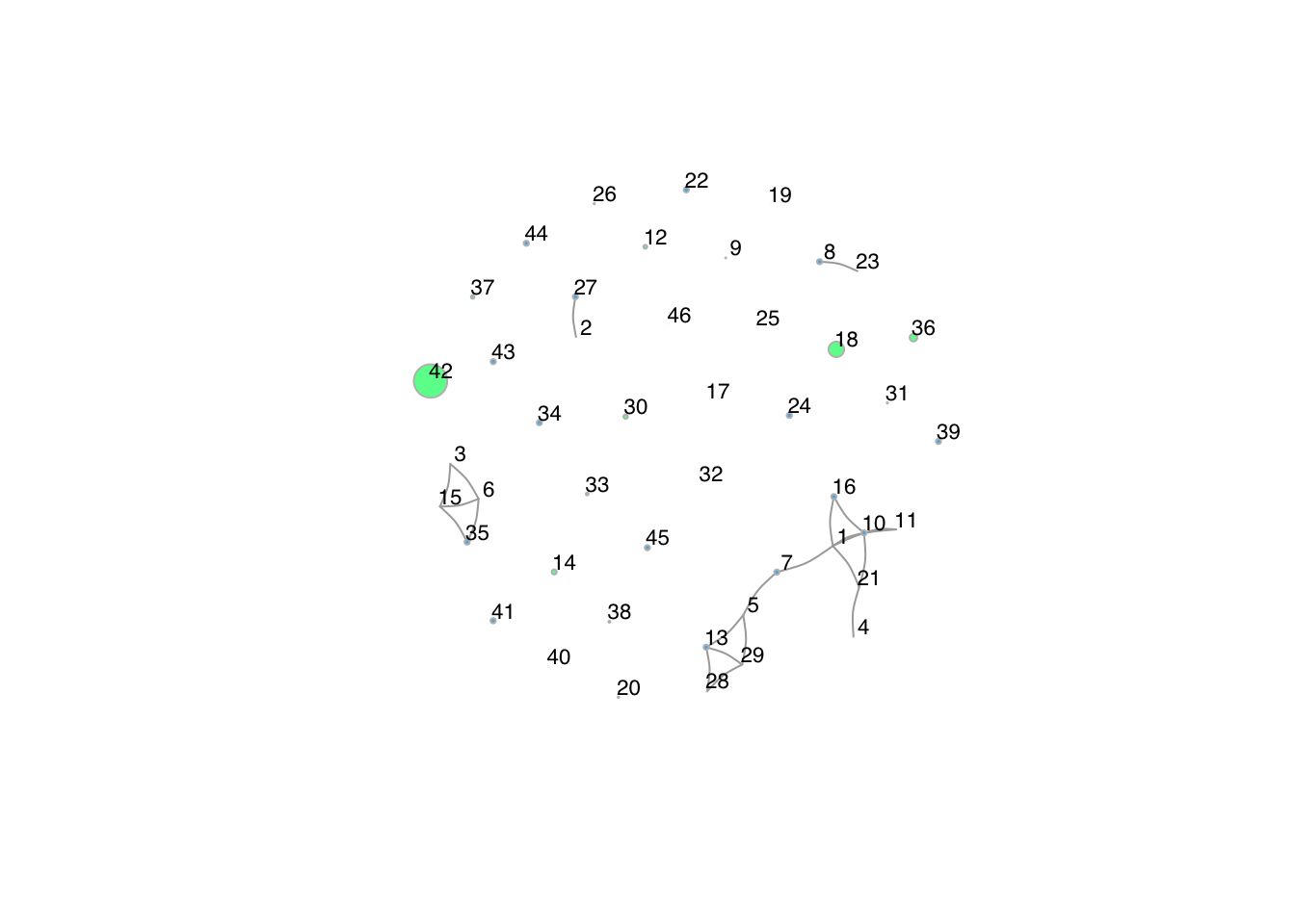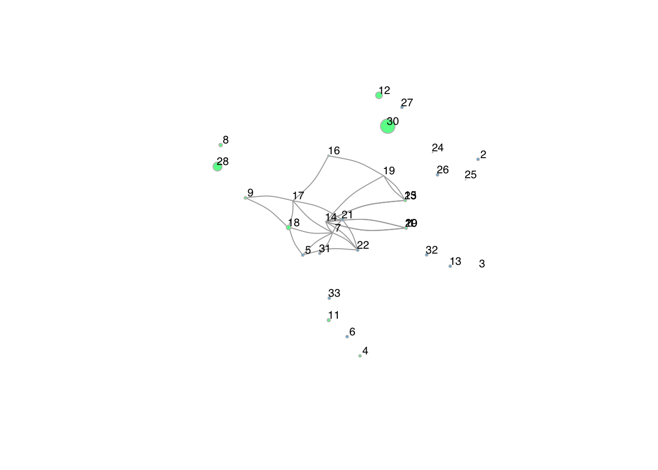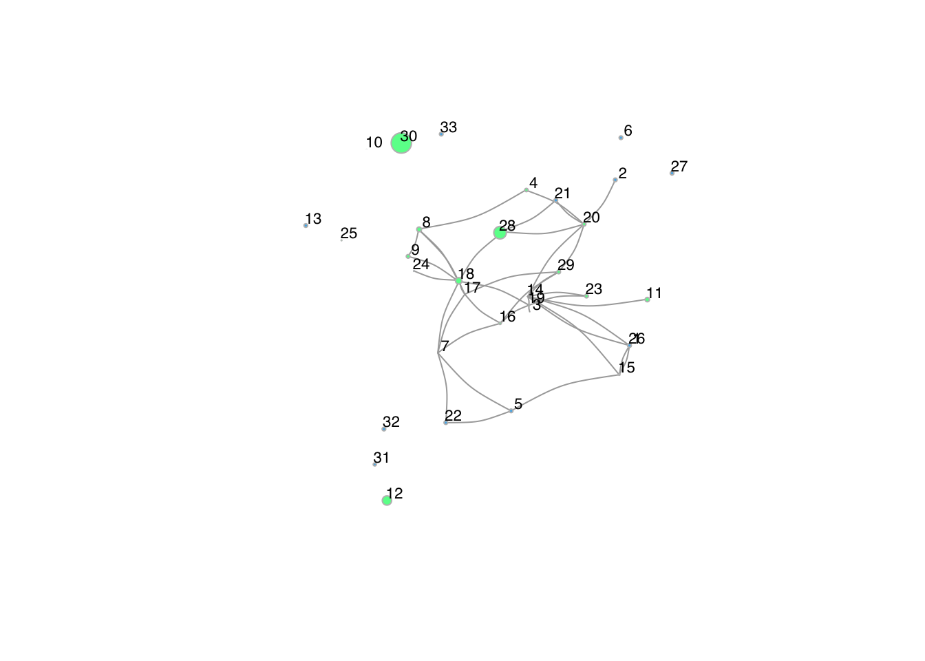 larger vertex in the plot. It is visible that node 28 and 30 have the